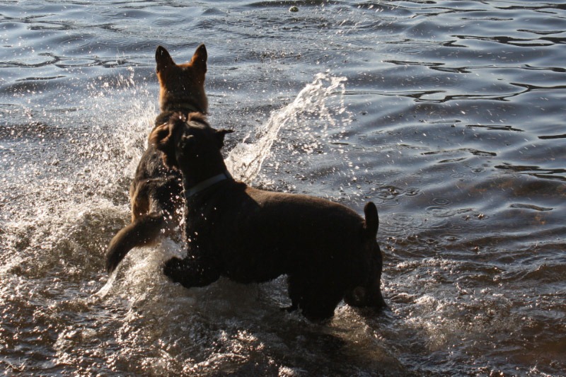 After we settled into our new accommodations and had a little snack, we decided to take the dogs to nearby Lake Siskiyou. They ran through the woods and fields and splashed happily in the water.