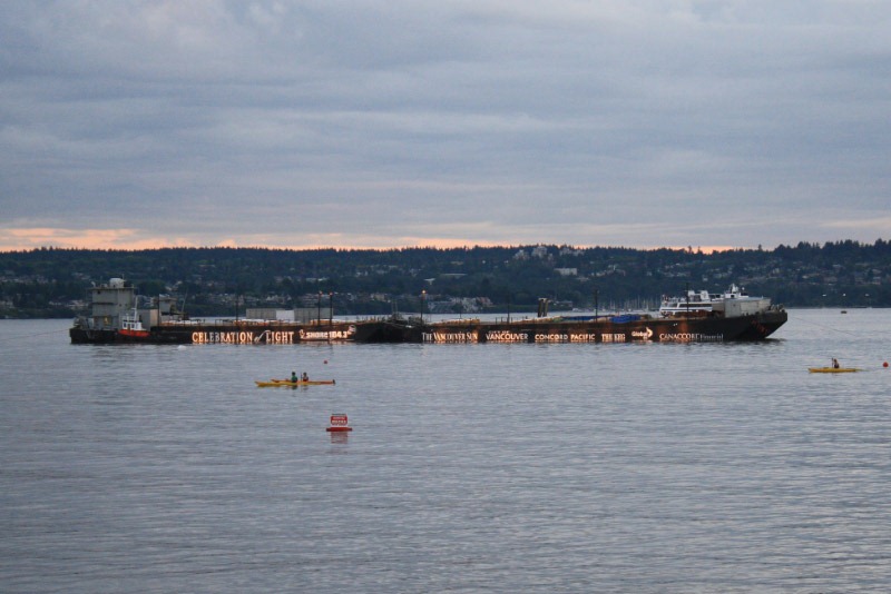 One of our real reasons for coming this week to Vancouver is to see the “Festival of Light,” an international fireworks competition. The barge in the bay is already in place for it.