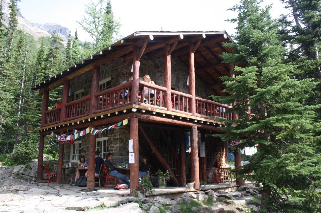 There was no sign of the promised rain when we rose in the morning, so we had a quick breakfast of mediocre hotel room coffee and peanut butter on rye bread. We drove to the lake. It was not yet nine in the morning, but the parking lot was already fairly full. Our plan was to hike up to the Plain of the Six Glaciers. In areas like the national parks bilingualism is strictly observed. This often seems a little absurd at times, but there was something about the translation of our destination into French – Le plaine des six glaciers – which made it seem more romantic and less geological. On the map, this looked like a relatively short and easy hike. It proved to be neither of those things, but both of us were glad we did it.