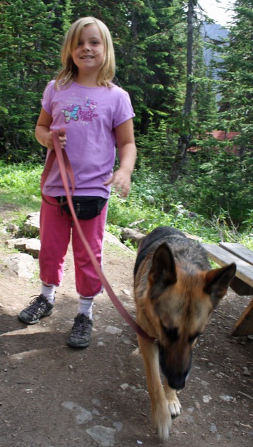 Most people eat upstairs, but with the dogs we ate outside. We were joined by Hannah, a precocious third grader from Toronto, who is obviously crazy about dogs. “She’ll talk your ear off,” her mother warned us. She told us all about the results of her research project on Los Angeles and also the plots of several episodes of Marmaduke.