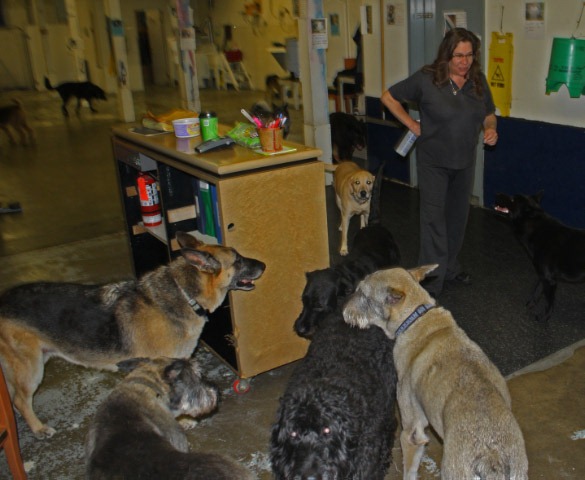 Since both Edie and Eli were pretty dirty after a couple of weeks frolicking in streams and mountains, we looked yesterday for a place to give them a bath. One of the places we came across on the Internet offered not only baths and clipped nails, but also extremely reasonable rates for day care. Since John and I wanted to do some museums and other places where we could not take the beasts, we thought it much better to leave them to play with other dogs than to stick them in the car in some underground parking garage. So our first order of the day today was to take them to the DogCity Dog Wash. The dogs were greeted at the door by about a dozen other canines including another black Bouvier! It only took Edie and Eli a moment before they were smiling and making play bows.