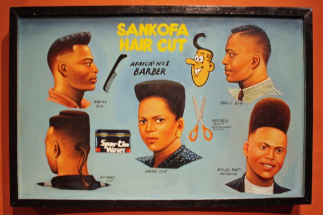 There were also shows highlighting other ethnic and cultural groups from various parts of the world. There was one exhibit highlighting the art of sub-Saharan Africa. Along with all the traditional pieces were some modern bits of folk art. We liked this advertisement for hair care.