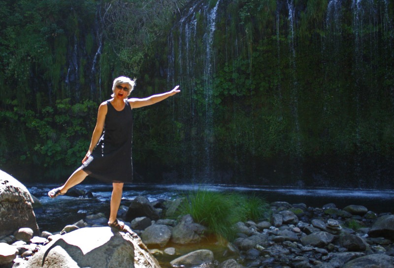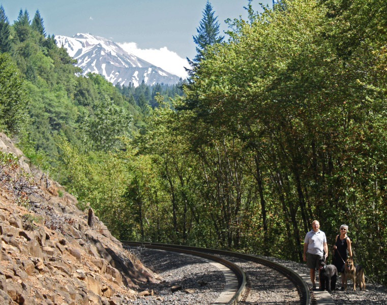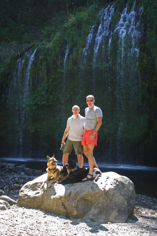 John wanted Ellen to come to Shasta so she could have a chance to see Mossbrae Falls. It’s not easy to get to these falls; in fact, it’s really illegal right now. The only access is along the Union Pacific Railroad tracks. We had to walk past lots of “No Trespassing” signs. And I’m supposed to teach children to follow the law….