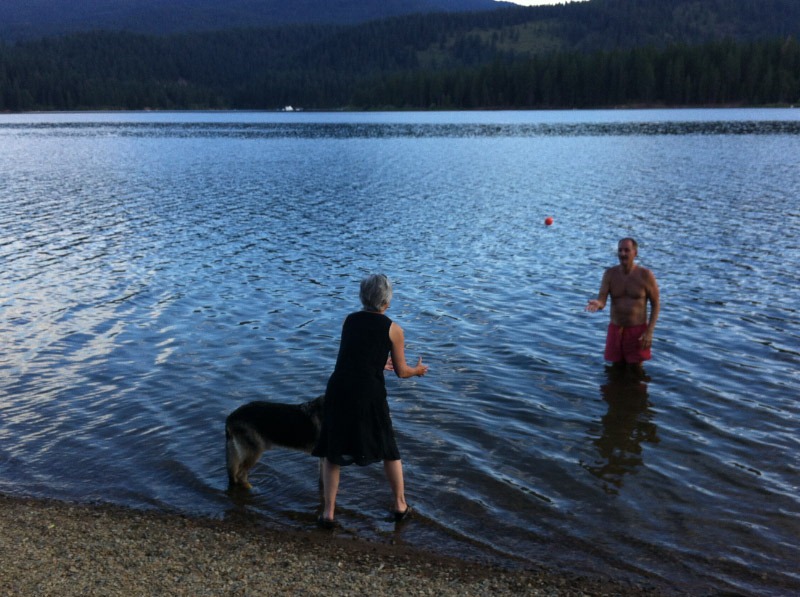 Ellen and John completely confused him by playing keep away. Edie barked a lot.