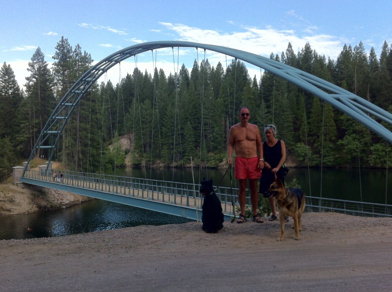 After this, we headed out of town to look at Lake Siskiyou. The lake is not natural; it is a flood control project. But it is remarkably pretty and it offers local people many opportunities for recreation. Jumping off the bridge below seemed to be a local past time. John contemplated doing so for a bit, but then thought better of the idea.
