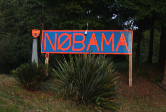 On the way back, a smiling woman with yoga mat in the back of her car waved at us. But just after that saw this sign. There was something about the surveillance camera on it and the vaguely fascist emblems on the poles on either side of the driveway (you can see just one in the picture below) that made it seem even creepier.