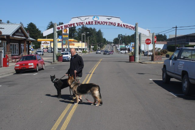 From there we drove a little south to the town of Bandon. John says that a number of years ago we spent an afternoon here riding bicycles and we were quite taken with the town. I only vaguely recall this, but my poor memory is the principal reason for keeping this blog. I was not that enchanted with it on this visit. The dogs definitely gave it four paws down because there was not a bowl of water anywhere.