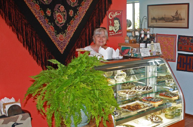 But with a little advice from a good guide book, you would also come across Susan’s Chocolates nearby. Susan – she’s the one in the picture below – makes scrumptious truffles and nougats by hand. They’re delicious!
