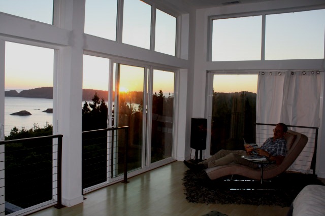 The food was excellent, and remarkably cheap. We had our second-best dinner in Oregon (our repast at Avignon in Portland being the best) for a mere 44 dollars. There was entertainment, too. Gary, our landlord was playing jazz guitar at the restaurant this evening. He is the one on the right. He has a strong musical background. He dropped out of architecture school to play guitar with some major bands. He said that He said he owed his success to drugs because he usually found himself with a job when one of the musicians had to go into rehab!