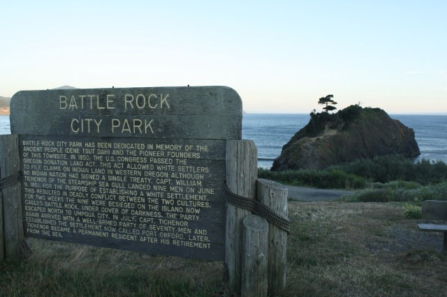 Outside the restaurant is Battle Rock, the scene of resistance from the natives to whites arriving with “land claims” in 1850.