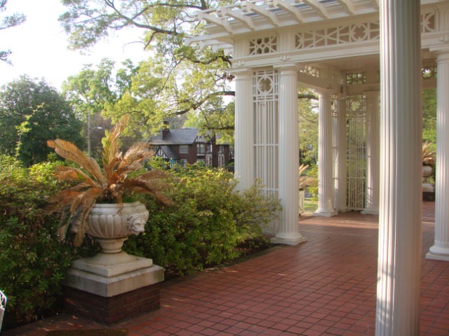 The most interesting part of the narration discussed all the different ways they built the house to stay cool. The house is basically made of brick, and the walls are 18 inches thick in spots. This, of course, helps keep it cooler. The veranda shade every window completely. Incidentally, the columns are also made of brick covered with wood and plaster. The rough wood floors were originally covered with marble.We could not take pictures inside the house, and there was not much of interest there except a huge fan which hung over the dining room table and which would have been swung back and forth during the meal to keep the insects away.