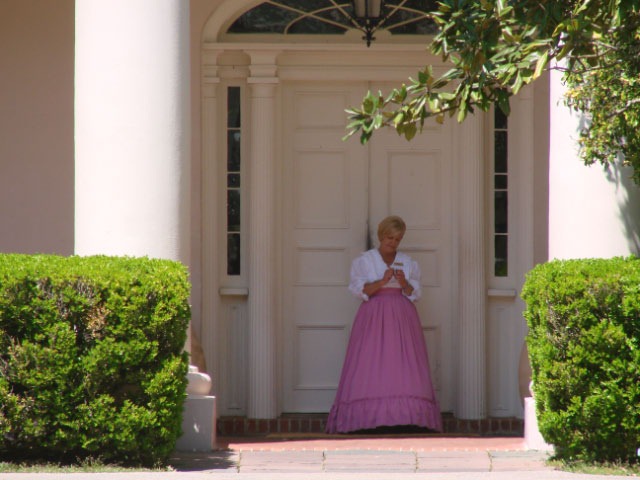 Our tour guide here was Gilda, shown below. We liked her. She had the perfect hard inflections of the Cajun accent and a gravelly voice which sounded like she had spent more of her life on a bar stool. But she did a good job with her script. Oak Alley is more a monument to the gracious Confederacy myth of Gone With the Wind.