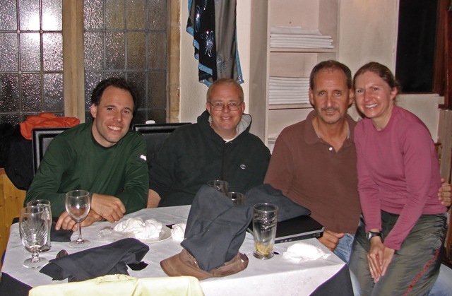 Since I’ve mentioned Aaron and Susan, over the last couple days, here is a picture the waiter took of all of us at the Indian restaurant Tuesday night. On the left you can see Aaron, on the right is Susan. It’s not a the best picture of her, but she had just spent a day riding 30 miles on a bike, changing a couple flat tires along the way.