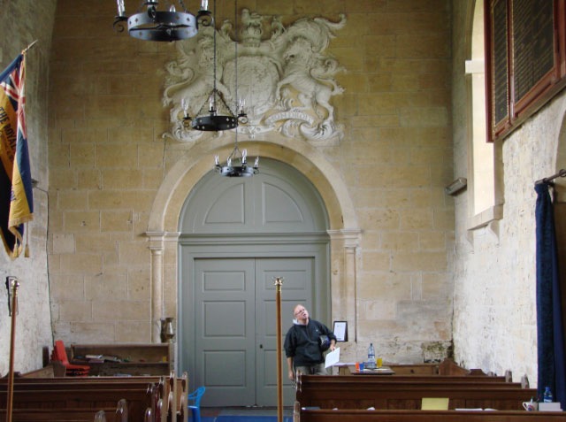 We had one of our first real downpours while we were in Blockley, so we sought refuge in the parish church there. As you can see, if was undergoing some renovation.There was a guide which explained what parts were Norman, what was medieval, and what renovations and “improvements” had been done during the 18th and 19th centuries. Unlike most Cotswold towns, which went into a severe decline after the Civil War (roughly 1640 so you don’t have to look it up on Wikipedia), Blockley was a flourishing center for silk production. So a great many homes in Blockley, as well as part of the church, date from the early 18th century. One particular  item of note:  in a glass case by the entrance of the church they have on display a first edition of the King James Bible. It was bound in wood covered with velvet.
