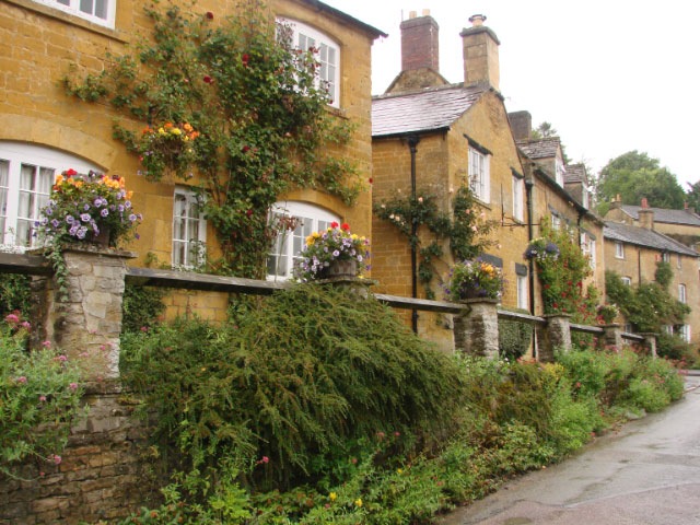 It was still raining Wednesday morning, so we decided to do a little tour of Chipping Campden itself. The town is quite compact, and most of the houses are on either side of the High Street. Since it was a market town, and it was not uncommon to drive large herds of sheep to and from the market, the street was unusually wide by medieval standards. The High Street curves gently following the contours of the hills. The houses in the village date from various centuries and a built in a variety of styles. But because they are all made of the handsome yellow Cotswold sandstone, and because they are uniformly two or three stories high, the building present a stunning harmony.